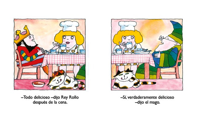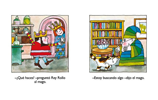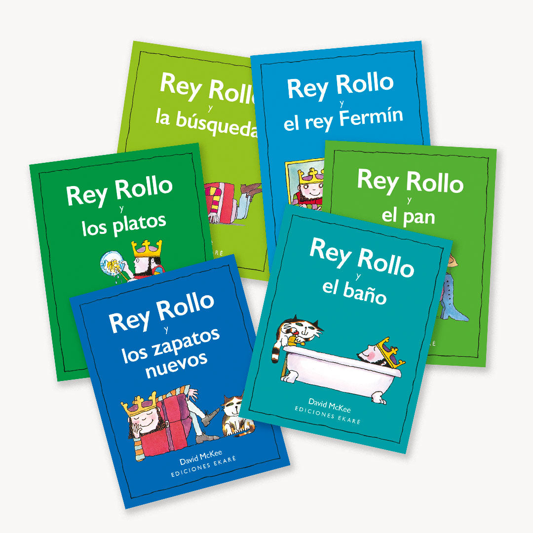 Mini colección de seis libros presentados en una pequeña cajita que cabe en las palmas y los bolsillos de los niños. David McKee cuenta con sutil humor los disparatados caprichos del Rey Rollo.